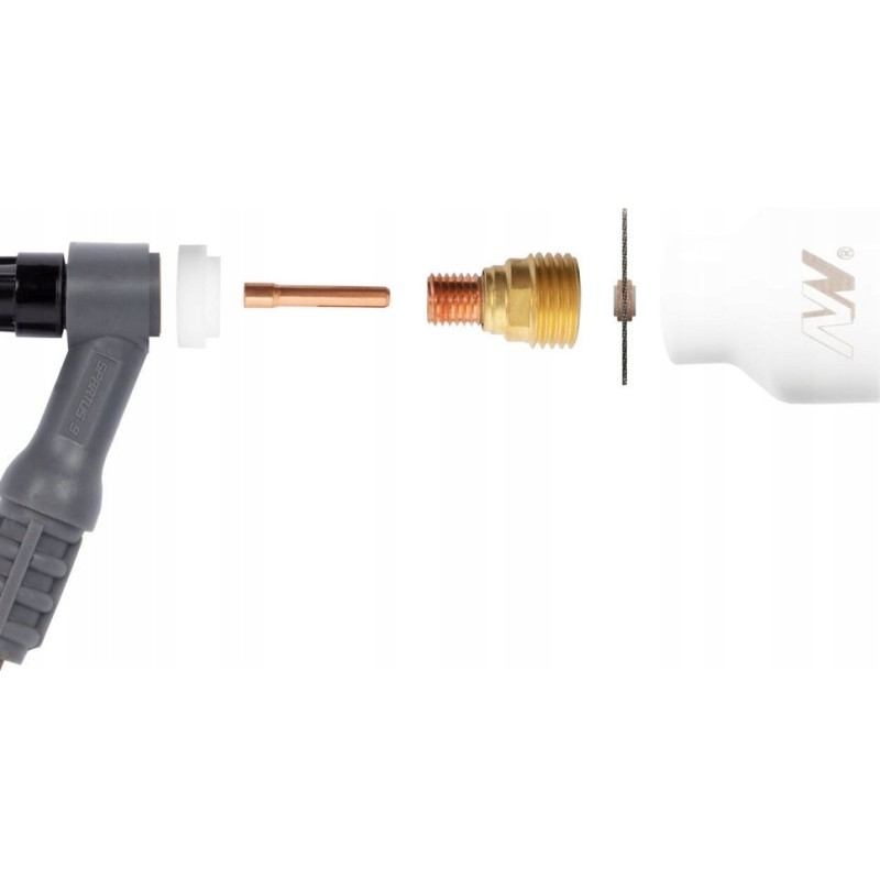 Zestaw CUPSYSTEM pasuje do uchwytów spawalniczych TIG: Spartus, Binzel, Trafimet, Sherman, Magnum, itp.