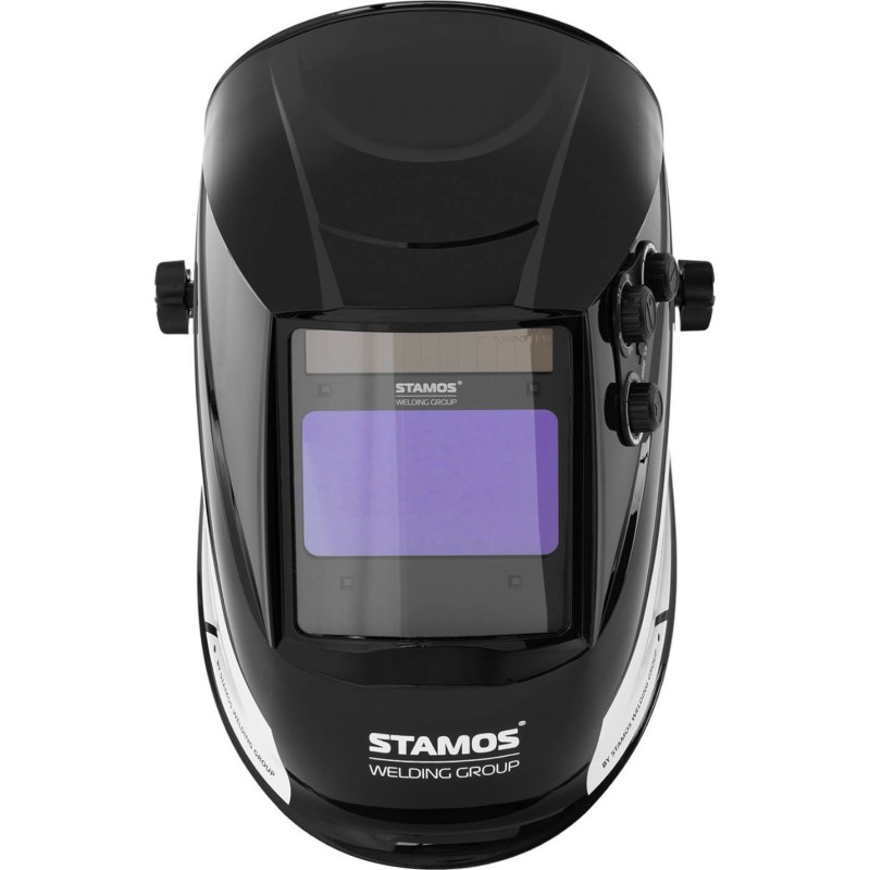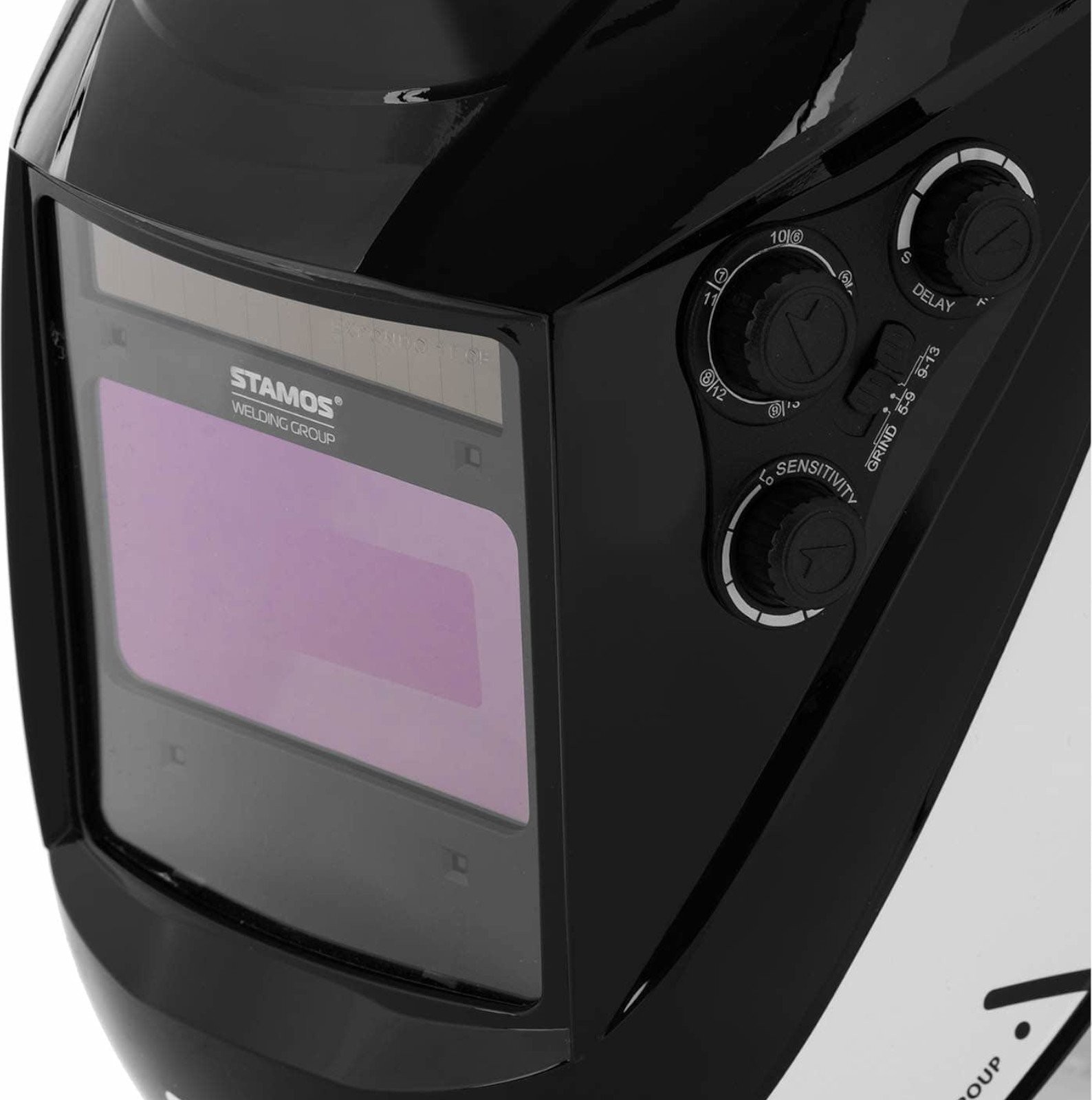 Maska spawalnicza marki Stamos Germany zapewnia ochronę podczas spawania elektrodami oraz gazem obojętnym. Oferuje pełną perspektywę w kolorze. Automatyczna przyłbica posiada regulowany zakres ochrony przed światłem DIN 4/5-8/9-13. Autotest pozwala dopasować osłonę świetlną do różnych potrzeb. Pole widzenia ma wymiary 100 x 60 mm. Trwały wkład X-BASIC zasilany jest ogniwami słonecznymi i zawiera wymienną baterię CR2450 o żywotności 5000 godzin. Przyłbica wykonana została z tworzywa sztucznego, jest niezwykle lekka, waży tylko 0,6 kg. Zastosowana mieszanka materiałowa wykonana z tworzywa sztucznego PA66 i PC charakteryzuje się wysoką odpornością na ścieranie i stabilnością wymiarową. Bardzo krótki czas reakcji 1/25000 s od jasnego do ciemnego chroni przed szkodliwymi promieniami łuku. Nie obciąża nadmiernie oczu i nie wymaga długiego okresu regulacji. Zapewnia także ochronę przed promieniowaniem UV/IR przy wszystkich poziomach jasności do DIN 16. Funkcja GRIND umożliwia wykonywanie innych prac metalowych takich, jak szlifowanie, bez zdejmowanie maski.