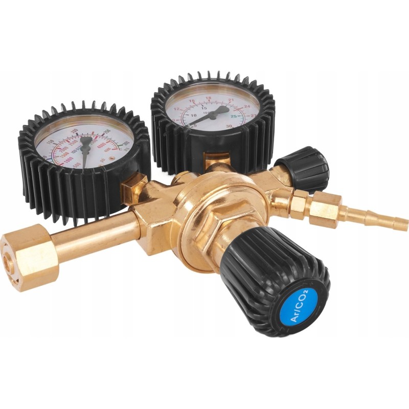 Prezentujemy nowoczesny reduktor gazu CO2/Argon, który zapewnia dokładną kontrolę przepływu gazu oraz ciśnienia wejściowego. Reduktor jest niezbędny w procesach spawania i cięcia. Ten reduktor posiada dwa manometry, z których każdy znajduje się w gumowej osłonie, co zapewnia dodatkową ochronę i wygodę podczas pracy.