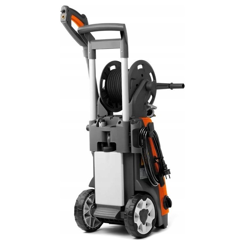 Imponująca myjka ciśnieniowa o solidnej budowie, przeznaczona do skomplikowanych zadań związanych z czyszczeniem na świeżym powietrzu. Pompa z mosiądzu i ceramicznymi tłokami gwarantuje długotrwałą wydajność. Możliwość regulacji ciśnienia pozwala na dostosowanie przepływu i ciśnienia wody. Zawiera wbudowany zbiornik na detergenty, którym łatwo zarządzać z przedniego panelu. Mosiężna głowica pompy zapewnia wyjątkową wytrzymałość. W zestawie znajduje się wąż ciśnieniowy wzmocniony stalą. Uchwyt Low Force ułatwia korzystanie z urządzenia, redukując wysiłek na dłoń. Silnik indukcyjny zapewnia niezawodne działanie, a aluminiowy uchwyt ułatwia transport. Posiada szybkozłącze do węża oraz duże koła, co zwiększa manewrowość urządzenia. Długa lance spryskująca, z funkcjami obrotowymi do regulacji dyszy i szybkiego podłączenia, zapobiegają problemom. Wartością dodaną są schowki na akcesoria, wąż z metalowym bębnem oraz schowek na kabel zasilający, co zapewnia wygodną i efektywną pracę. W zestawie dwie różne dysze.