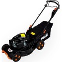 Cechy produktuKosiarka jest wyposażona w koła na łożyskach, co zapewnia płynność jazdy. Posiada stałe obroty silnika oraz centralną regulację wysokości cięcia. Kosz na trawę ma pojemność 75 litrów, co pozwala na dłuższe koszenie bez konieczności częstego opróżniania.