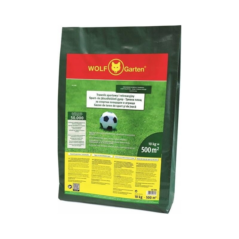 SG 500 to specjalna mieszanka nasion traw stworzona przez WOLF-Garten dla powierzchni o intensywnym użytkowaniu, takich jak tereny sportowe czy miejsca rekreacyjne. Dzięki tej mieszance można uzyskać niezwykle wytrzymałą murawę, która odporna jest na ciągłe używanie. Co więcej, mieszanka SG 500 nadaje się do każdego rodzaju gleby.
