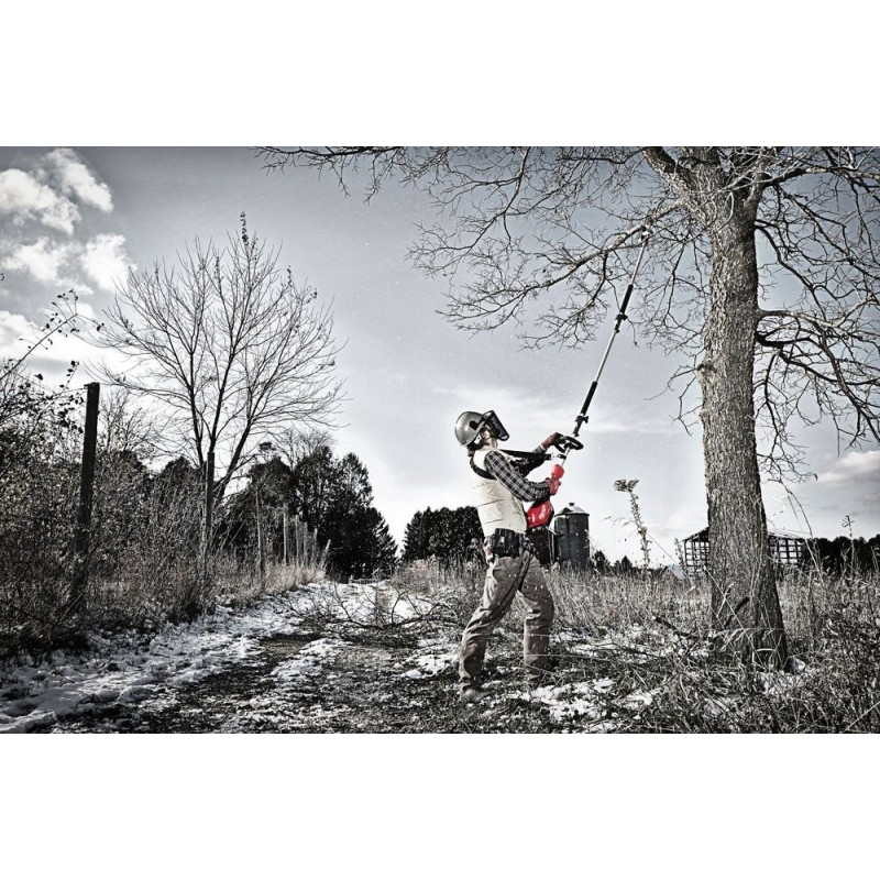 - Gwarantuje wydłużenie zasięgu o 91cm co pozwala na znacznie bezpieczniejszą prace przy użyciu końcówek takich jak pilarka do gałęzi lub nożyce do żywopłotu