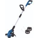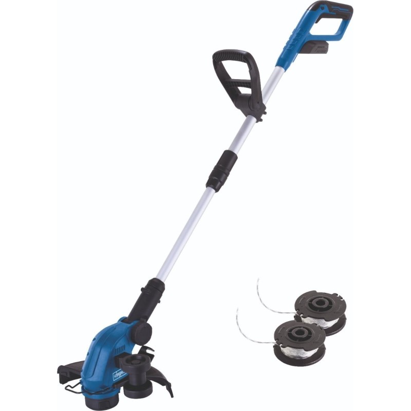 SPECYFIKACJE Wymiary (D x S x W): 1235 x 335 x 356 mm Typ silnika: Silnik szczotkowy Napięcie akumulatora: 20 V Maksymalna szerokość cięcia: 300 mm Długość żyłki: 3 m Regulacja wysokości: Do 270 mm Regulacja kąta: 0° – 90° Głowica tnąca: Obracana