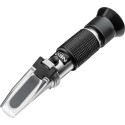 Refraktometr do testowania płynu chłodniczego, elektrolitu, płynu do spryskiwaczy.W zestawie: refraktometr, szmatka do czyszczenia, pipeta do nabierania płynów, wkrętak. Temperatura referencyjna: 20 °C, ATC – automatyczna kompensacja temperatury (przy temperaturach 10 - 30 °C), możliwość regulacji ostrości, długość 160 mm, metalowy korpus