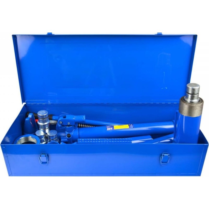 Zestaw profesjonalnych rozpieraków 20 ton w walizce. Zestaw został wyposażony w wydajną pompę hydrauliczną dzięki której wykonasz następujące prace: podnoszenie, ściąganie, zginanie, prostowanie oraz rozpieranie. Cechy produktu szybka pompa hydrauliczna posiada szerokie zastosowanie w warsztatach samochodowych przedłużki z możliwością połączenia w jedną długą Dane techniczne Siła rozpierania: 20 T Zakres roboczy: 330 - 460 mm Posuw siłownika: 130 mm Elementy zestawu pompa hydrauliczna siłownik hydrauliczny 20 ton wysokociśnieniowy giętki wąż ze sprężynami ochronnymi na obu końcach przedłużki: 10 (5"), 20 (8"), 30 (12"), 50 cm (20") 3 łączniki stopka krzyżowa stopka stożkowa stopka płaska metalowa walizka 71x30x15 cm
