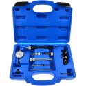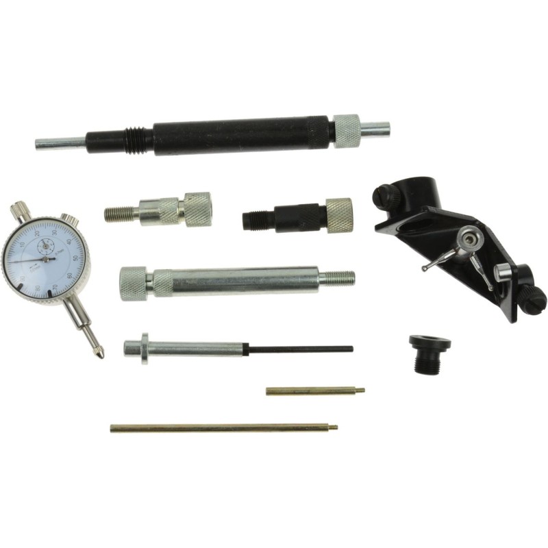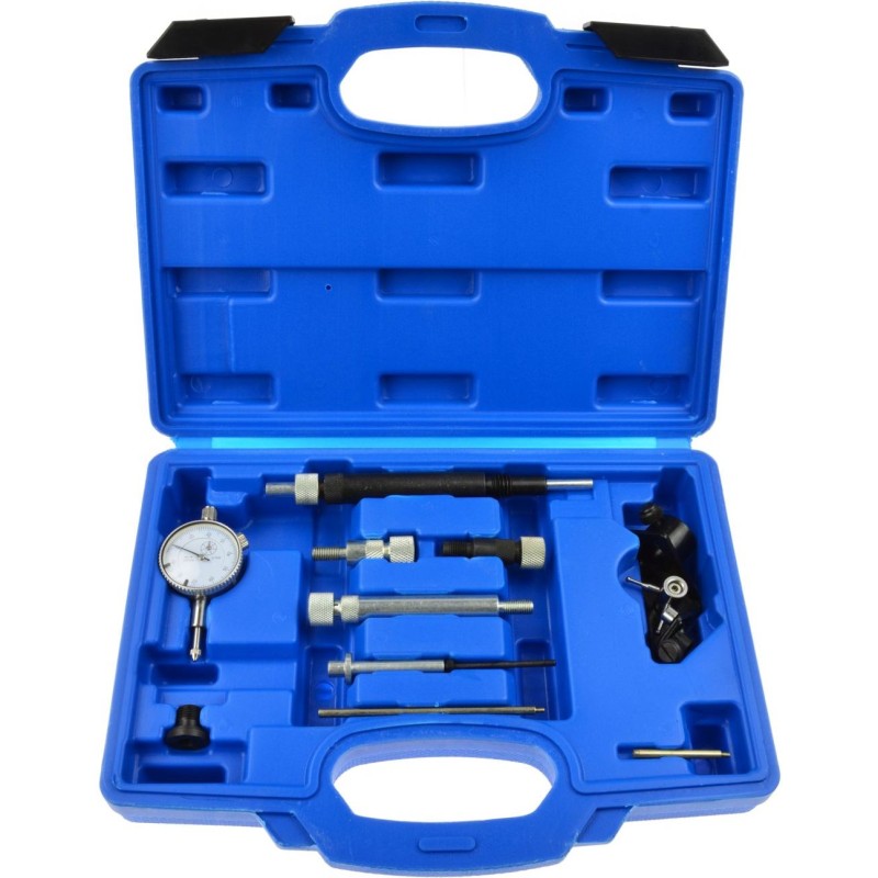 Przyrząd do ustawiania pomp wtryskowych BOSCH / LUKAS / CAV Przyrząd przeznaczony do precyzyjnego ustawienia bądź sprawdzenia początku wtrysku w pompach wtryskowych rotacyjnych BOSCH, LUKAS, CAV. Obsługiwane pompy wtryskowe stosowane w autach marek: Fiat Lancia Alfa Romeo VW-Audi BMW Ford Renault Rover Iveco Mitsubishi Isuzu i inne > Zawartość zestawu: czujnik zegarowy 0-8mm uchwyt do wyznaczania położenia tłoka uchwyt czujnika do pomp LUKAS CAV redukcja M8 x M12 oprawa czujnika M10 krótka oprawa czujnika M8 krótka oprawa czujnika M8 długa przedłużka do uchwytu nr 3 przedłużka końcówki pomiarowej krótka przedłużka końcówki pomiarowej długa