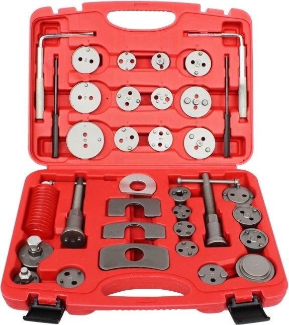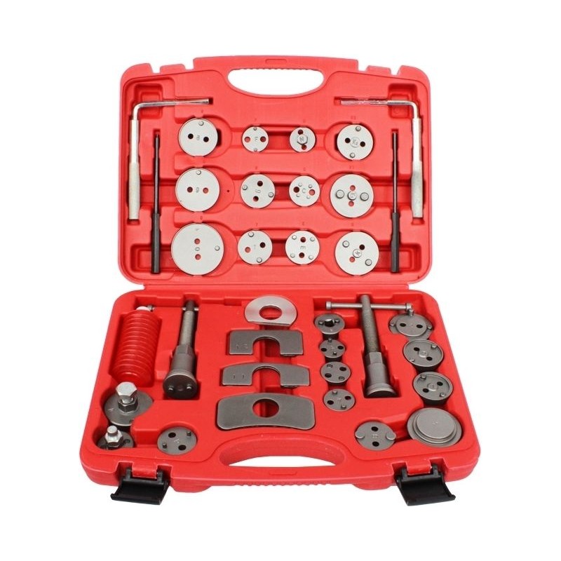 W zestawie 35 częściowy dostosowanych do wielkości tłoczków hamulcowych w większości marek europejskich i azjatyckich samochodów osobowych