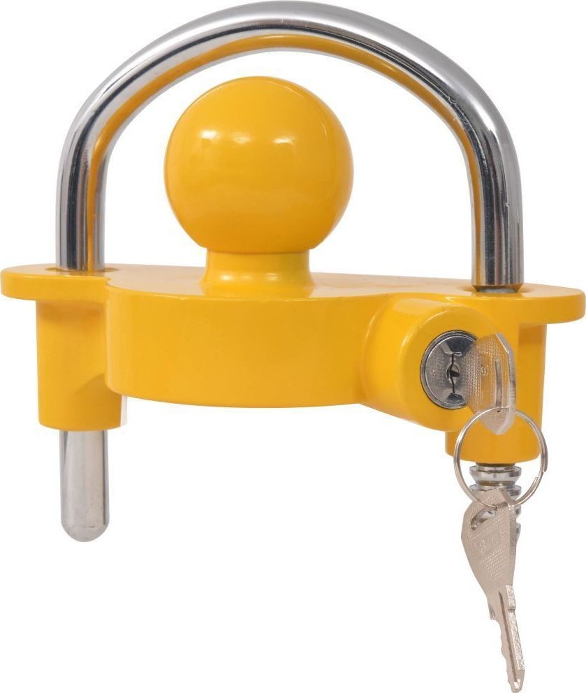 Ta blokada zaczepu składa się z wytrzymałej stalowej szekli i korpusu ze stopu aluminium, który został pokryty proszkowo żółtą farbą w celu zapobiegania rdzewieniu i zapewnienia odporności na działanie czynników atmosferycznych. Założenie zabezpieczenia jest dość proste: odblokuj pałąk za pomocą klucza i pociągnij go w górę, aby kula znalazła się w haku holowniczym, a następnie zablokuj go ponownie.