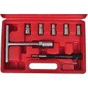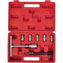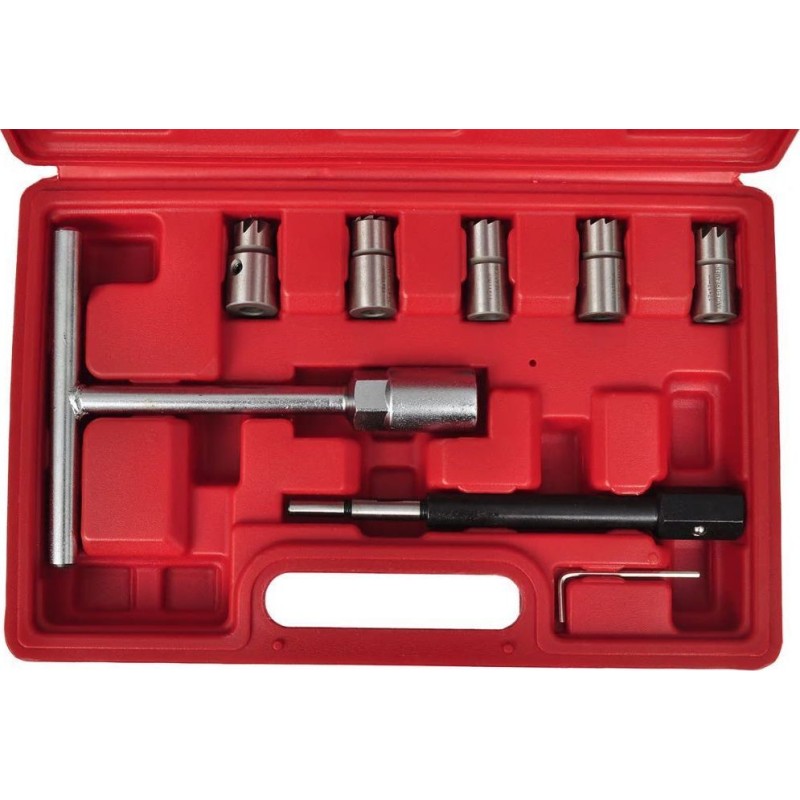Ten kompleksowy zestaw narzędzi nadaje się do szerokiej gamy pojazdów z silnikami diesla, za równo do użytku w firmie jak i sporadycznie. Cały zestaw jest przeznaczony do czyszczenia i dekarbonizacji uszczelek wtryskiwaczy przy wymianie wtryskiwaczy. 5 różnych zawartych noży dostępnych jest dla prawie wszystkich samochodów z silnikiem diesla. Mogą one być wykorzystywane do ponownego cięcia wtryskiwaczy przy remoncie lub wymianie. Pomagają również utrzymać wtryskiwacz diesla w porządku. Wszystkie narzędzia wykonane są z wysokiej jakości materiałów, zapewniających łatwą i czystą pracę. Zestaw zawiera: - 1 x 15mm x 19mm płaski szpikulec - do uniwersalnych zastosowań wtryskiwaczy