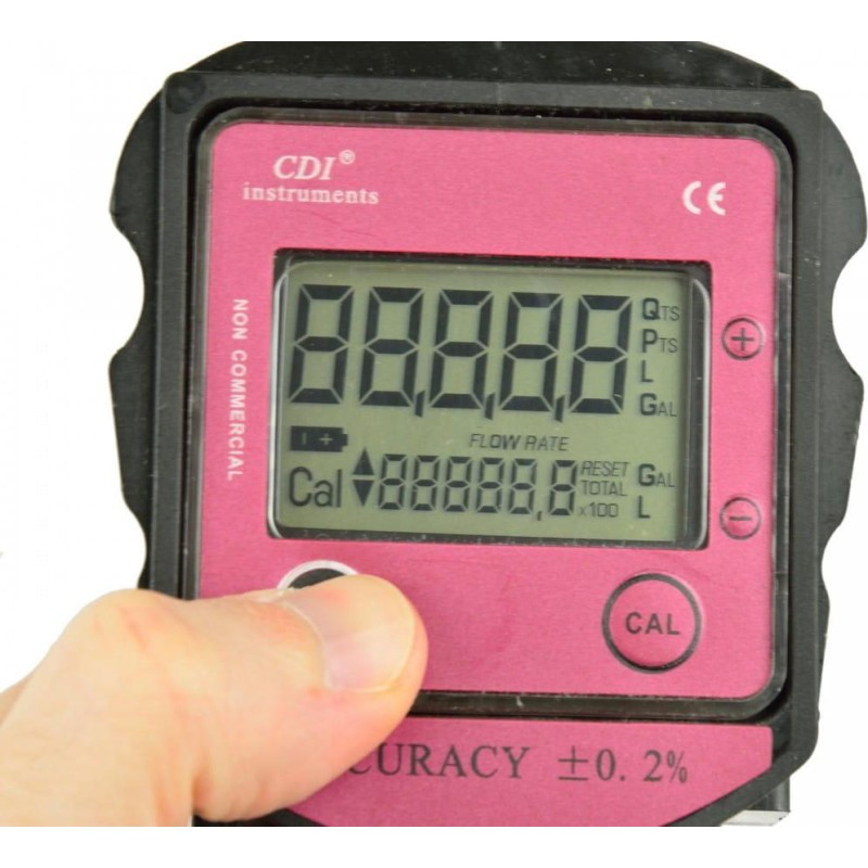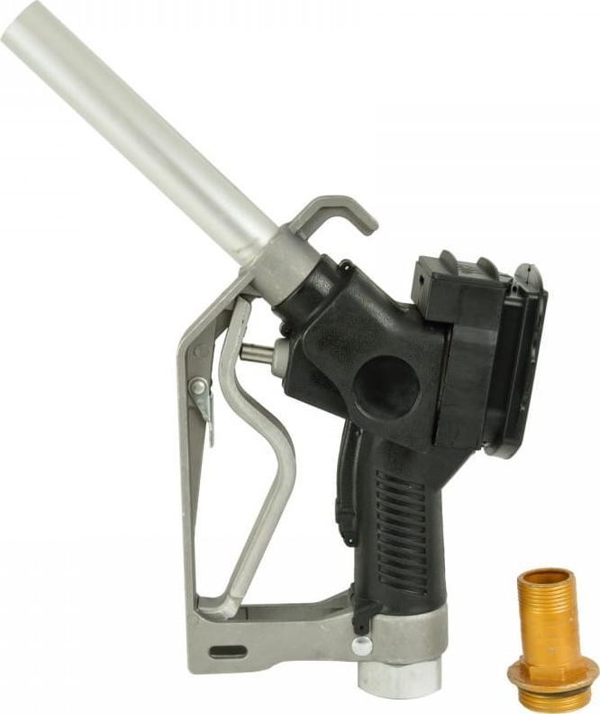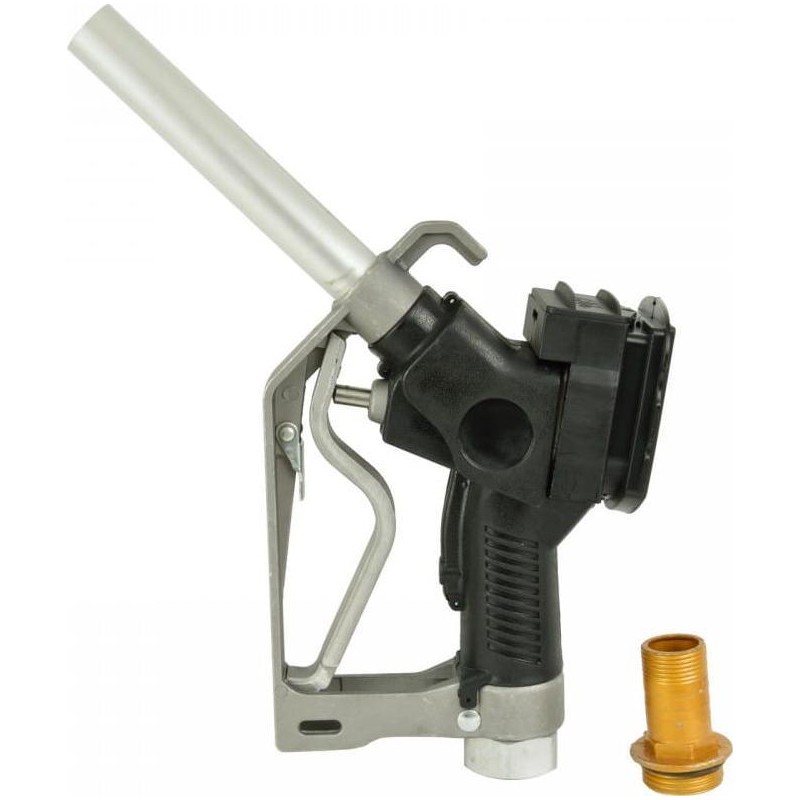 Pistolet z licznikiem LCD do dystrybutora CPN Wysokiej jakości pistolet przeznaczony do przepompowywania paliw. Wyposażony w licznik LCD znajdujący się w turbinie pistoletu umożliwiający monitorowanie przepływu paliwa z dokładnością +/- 0,2%. Urządzenie niezastąpione w warsztatach samochodowych, gospodarstwach rolnych i domowych itp. Nie nadaje się do pompowania benzyny. Cechy produktu wydajność od 20 do 60 L/min licznik LCD z dokładnością +/- 0,2% z możliwością wyświetlania pomiaru w czterech jednostkach: L, Gal, Dts, Pts temperatura pracy: od -10 do 60°C przeznaczony do oleju napędowego (diesel) oraz nafty ciśnienie maksymalne 0,6 MPa przyłącze 1" BSP zasilanie: 2x bateria AAA dwustopniowa blokada spustu