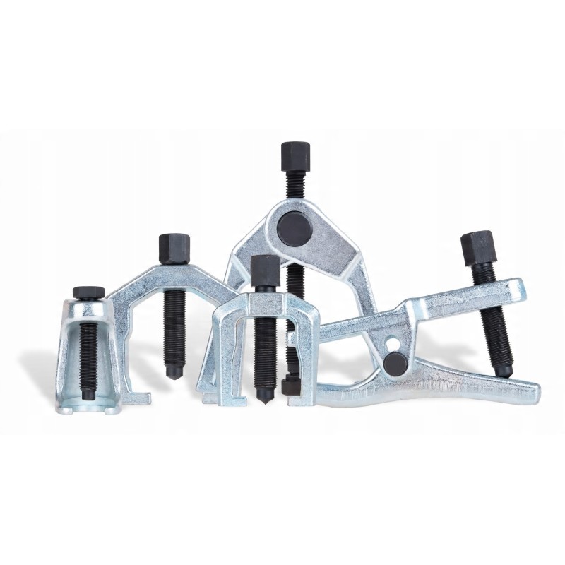 Zestaw zawiera pięć różnych ściągaczy, które są dostosowane do różnych wymiarów przegubów i sworzni. Dzięki temu użytkownik ma możliwość wyboru odpowiedniego narzędzia do konkretnego zadania, co zwiększa komfort i efektywność pracy.