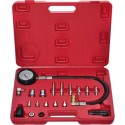 Aby dokładnie ocenić stan silnika w Twoim samochodzie, należy użyć prezentowanego zestawu z miernikiem ( 0-70 Bar / 0-1000 Psi). W zestawie znajdą się 4 różne świece żarowe, i 3 adaptery do wtrysków. Miernik resetuje się samoczynnie, w wszystkie części wyposażono w szybko-złącze. Dodatkową zaletą zestawu będzie część umożliwiająca pracę w trudno dostępnych miejscach.