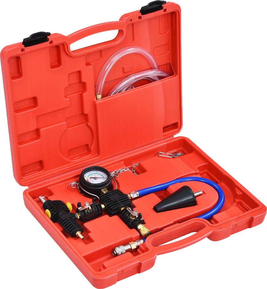 Ten zestaw eliminuje potrzebę opróżniania i czyszczenia systemu w celu usunięcia kieszeni powietrznych. W jego skład wchodzi elastyczny wąż do pracy w trudno dostępnych połączeniach. Manometr ma gumową tuleję ochronną i zawór bezpieczeństwa. Zawiera uniwersalny adapter do stosowania w chłodnicach większości samochodów osobowych, SUV-ów, furgonetek i lekkich ciężarówek. W zestawie znajduje się wytrzymały, formowany wtryskowo plastikowy futerał, który ułatwia transport i przechowywanie. Jest łatwy do wykorzystania dzięki szczegółowej instrukcji obsługi.
