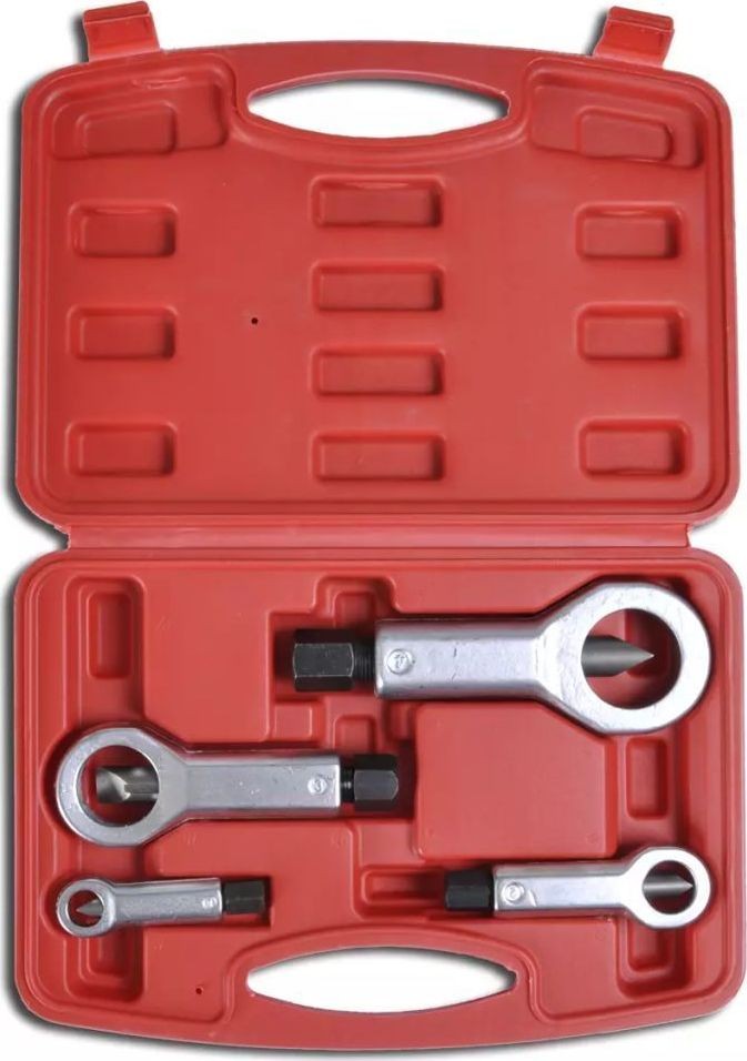4-częściowy zestaw będzie pasować do wszystkich śrub w rozmiarach od 9 mm do 27 mm. Idealny do profesjonalnego i domowego użytku. Szczególnie polecany do usuwania uszkodzonych lub zardzewiałych nakrętek, bez konieczności uszkadzania gwintu.