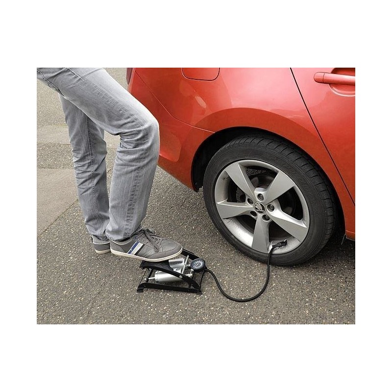 Mocna pompa wyposażona w dwa tłoki. Dzięki swoim niewielkim rozmiarom można go nosić w dowolnym momencie w bagażniku pojazdu. Dołączone są adaptery do różnych aplikacji.