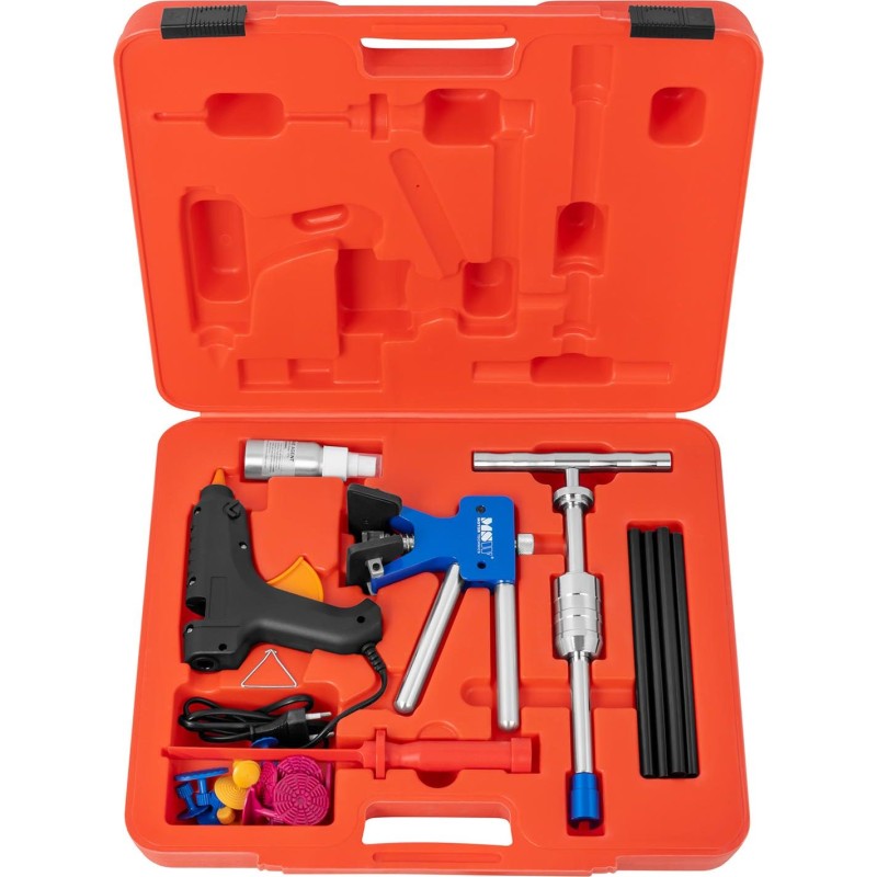 Zestaw naprawczy PDR (znaczenie: Paintless Dent Repair) do usuwania wgnieceń w karoseriach samochodowych, motocyklach czy nawet pralkach i lodówkach to jeden z podstawowych elementów wyposażenia warsztatów blacharskich oraz mechanicznych, a także świetny dodatek do prywatnych garażów lub warsztatów majsterkowiczów. Dzięki wygodnej i prostej obsłudze oraz dołączonej instrukcji obsługi świetnie sprawdzi się zarówno w rękach profesjonalistów, jak i amatorów.