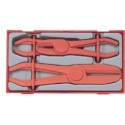 Szczypce przydatne podczas prac przy układzie chłodzenia lub hamulcowym. Ściskając zamykają przewód wężowy. Dzięki temu nie ma potrzeby opróżniania układu. Dla zapewnienia szczelności zaciśnięcia szczęki poruszają się równolegle. Automatyczne blokowanie zacisku szczęk. Trzy wielkości pokrywające większość rozmiarów węży. Dostarczany w pojemniku plastikowym z odłączaną pokrywą. Pasuje do skrzynek i wózków narzędziowych Teng Tools.