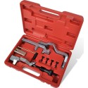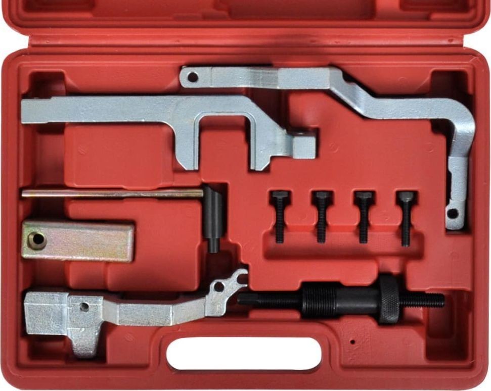 Kompletny zestaw narzędzi został wykonany z myślą o profesjonalnych naprawach silników takich jak wymiana i wyrównywanie napięcia paska i łańcucha rozrządu.
