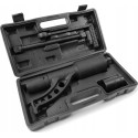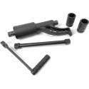 Po poluzowaniu kluczem planetarnym szpilek w kole i podniesieniu auta podnośnikiem, wystarczy połączyć korbę z dołączoną w zestawie przedłużką i nasadką, a następnie można przystąpić do szybszego wykręcania poluzowanych nakrętek/śrub - w ten sposób uzyskujemy konfigurację z przełożeniem 1:1