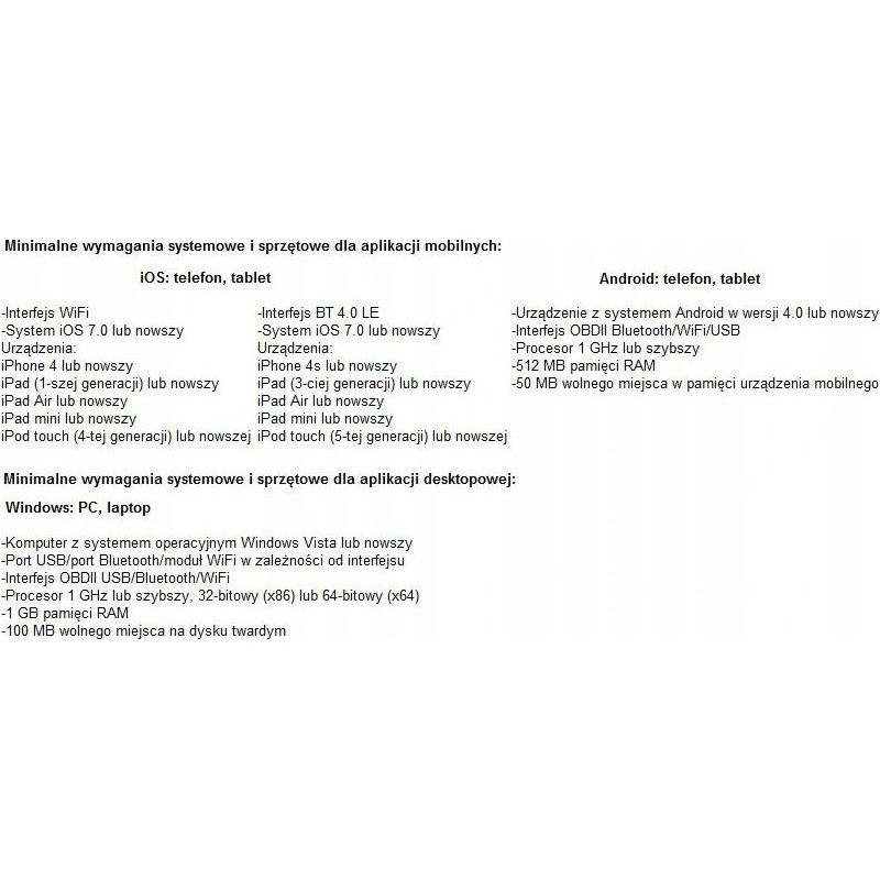 * Lista obsługiwanych parametrów i danych jest ściśle związana z podłączanym samochodem.