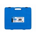 Solidna walizka dołączona do zestawu umożliwia wygodne przechowywanie oraz transport narzędzia. Dzięki temu, wszystkie elementy są zawsze w jednym miejscu, co ułatwia ich użytkowanie i zapewnia porządek w warsztacie.