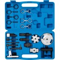 Blokada rozrządu marki MSW pozwoli naprawić silniki Diesla 2.7/3.0 l TDI V6 lub 4.0/4.2 V8 TDI w autach marki Audi czy Volkswagen. Dzięki niej w mgnieniu oka można wymienić pasek rozrządu lub łańcuch rozrządu, zablokować wałki rozrządu i wałki wyrównoważające, zablokować wał korbowy lub wykonać inne naprawy. Dzięki blokadzie wałka rozrządu można wykonywać nawet skomplikowane prace w różnych modelach pojazdów Audi lub Volkswagen. Profesjonalne narzędzia są precyzyjnie dopasowane do konkretnych fragmentów silnika i dlatego z łatwością się z nich korzysta. Zestaw do blokowania rozrządu gwarantuje wydajne mocowanie i regulację części samochodowych. Zestaw MSW jest też odporny na zużycie. W skład zestawu wchodzą adaptery do koła zębatego, wału korbowego oraz wałka rozrządu, różne sworznie blokujące, mocowania, ściągacze i wiele innych narzędzi. Wszystkie elementy kompletu wykonano z wytrzymałej i solidnej stali węglowej, która zapewnia wieloletnią trwałość. Dlatego blokady rozrządu nie powinno zabraknąć w żadnym profesjonalnym warsztacie samochodowym czy u mechanika hobbysty. Bezpieczna walizka transportowa z polietylenu pozwoli zabrać ze sobą narzędzia lub je przechować po pracy. W ten sposób łatwo utrzymać porządek w warsztacie, a zestaw będzie zawsze pod ręką.