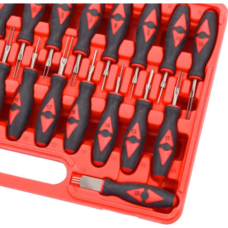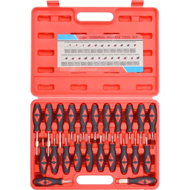 Nasz zestaw narzędzi jest przeznaczony do odblokowania styków wtykowych w elektronice pojazdu, bez uszkadzania ich.
