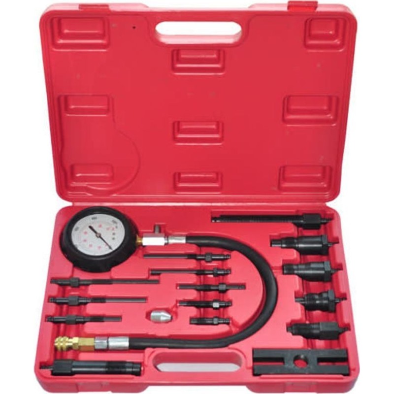Manometr ma zakres pomiarowy 0-70 bar / 0-1000 Psi. Dodatkowo w zestawie znajduje się 9 świec żarowych i 4 adaptery wtryskiwaczy, a także wbudowany reseter i adapter.