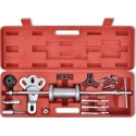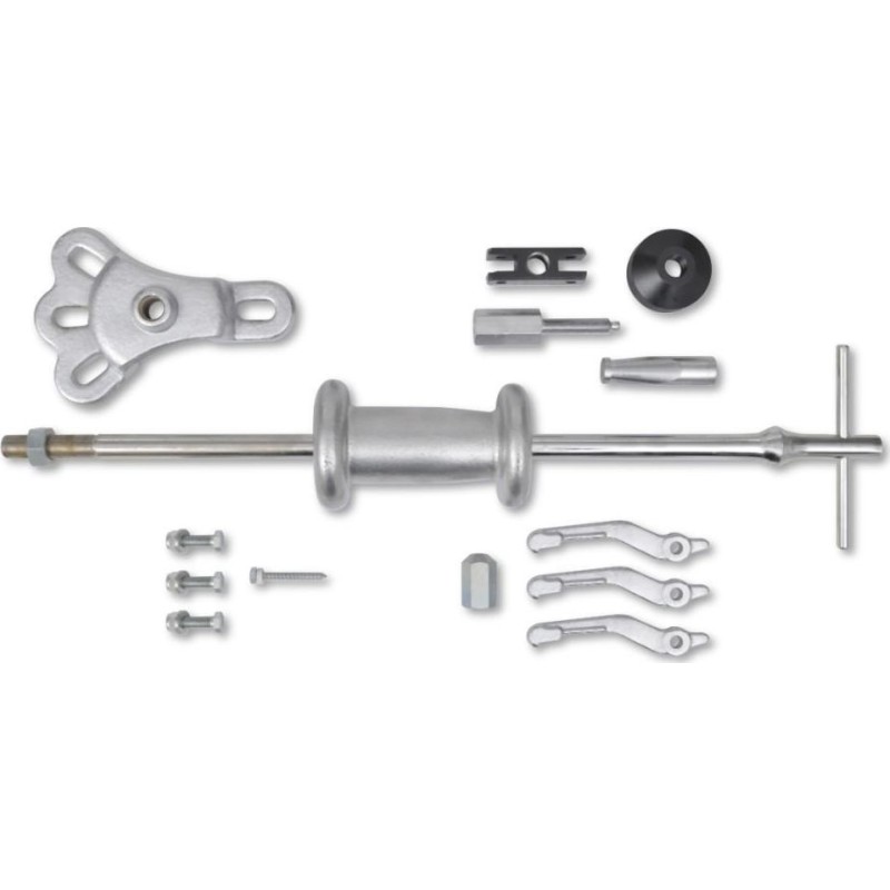 Zestaw obejmuje młotek bezwładnościowy 6 lb ze stali ciągliwej, który zapewnia szybkie i precyzyjne ściąganie w ciasnych przetrzeniach. Wewnętrzne i zewnętrzne szczęki oferują szereg kombinacji do ściągania łożysk, kół zębatych i uszczelnień. Zestaw zawiera również adapter klucza, haczyk, ściągacz osi tylnej oraz końcówkę do usuwania wgnieceń w blachach lub innych zastosowań.