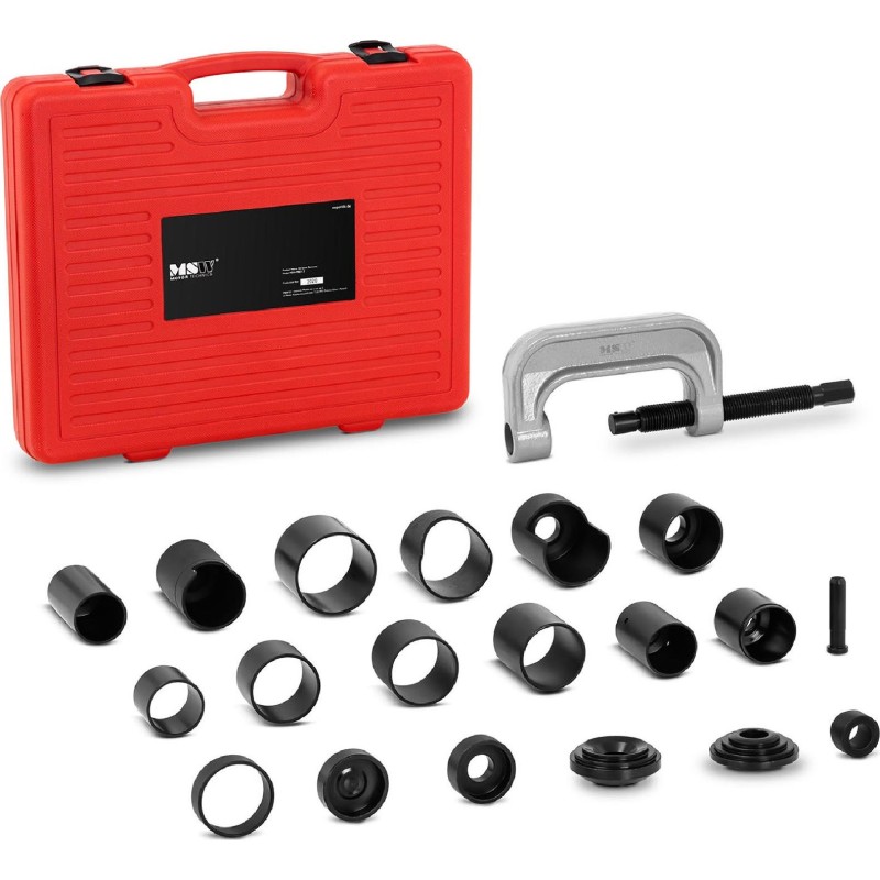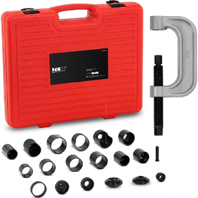 Ściągacz do sworzni kulistych marki MSW stanowi akcesorium do profesjonalnego użytku w warsztatach mechaniki pojazdowej, serwisach samochodowych, garażach itp. Zestaw składa się ze śruby o trzpieniu M25 (dł. 27 cm) oraz wielu funkcjonalnych nasadek. Dzięki nim narzędzia można użyć do wyciągania i zakładania przegubów kulowych w samochodach marki Ford (vany, SUV-y i lekkie ciężarówki do 2003 r.), Dodge (lekkie ciężarówki do 1998 r., Durango i Dakota do 2003 r.), Honda (Accord, Civic, del Sol i Prelude do 2001 r.) i wielu innych europejskich marek (modele transporterów i SUV-ów).