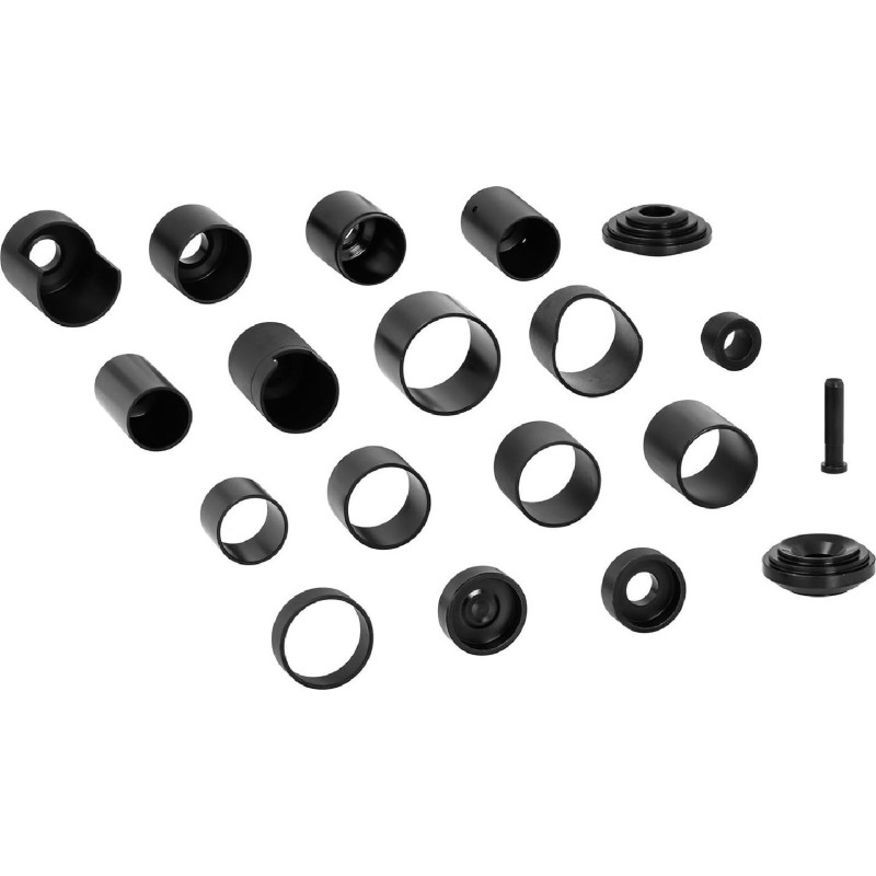 - Ramka typu „C, - Śruba ramki typu „C, - Tuby odbiorcze, - Adapter instalacyjny, - Adapter ustawiający, - Wtyczka środkowa, - Tuba odbiorcza OD 2-1 / 2", I. D. 2-1 / 4", długość 3/4", - Adapter nasadki odbiorczej, - Instalator / deinstalator, - Tuba odbiorcza, - Tuba odbiorcza OD 3", I. D. 2-3 / 4", długość 2-1 / 4", - Kubek odbiorczy, - Tuba odbiorcza, - Kubek instalacyjny, - Kubek odbiorczy B-2037-1617, - Kubek odbiorczy B-2037-1718, - Kubek instalacyjny, - Kubek instalacyjny, - Walizka do przenoszenia, - Instrukcja obsługi.
