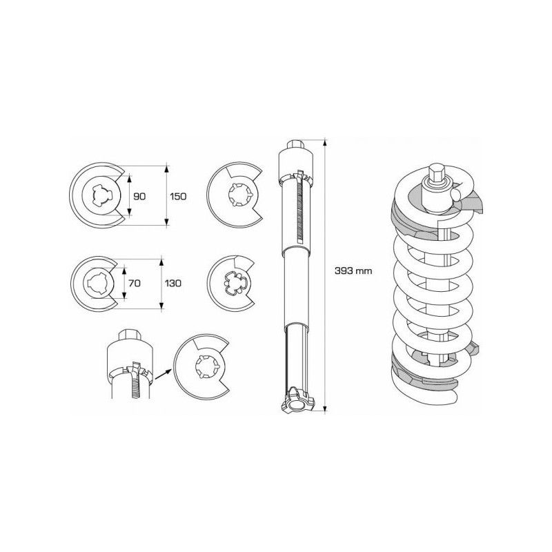 - Urządzenie jest stosowane do demontażu i montażu sprężyn amortyzatora osi przedniej i tylnej.