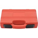 Zestaw wykonany został z utwardzanej stali węglowej, co zapewni mu trwałość na długi czas. Narzędzia umieszczone zostały w solidnej walizce z piankowym wypełnieniem dla łatwego transportu i przechowywania.