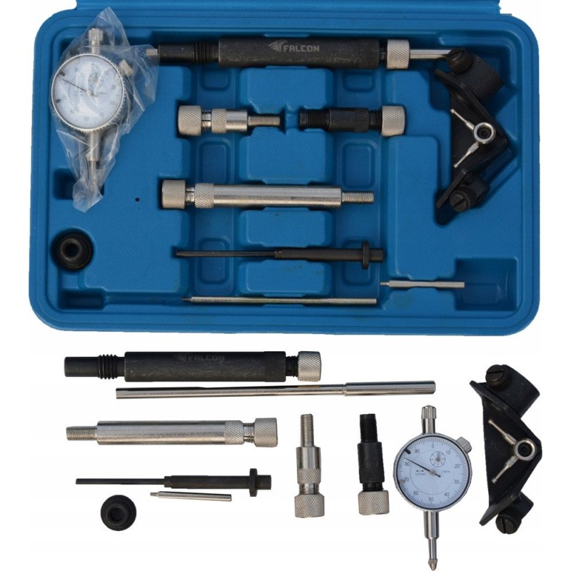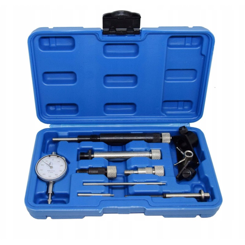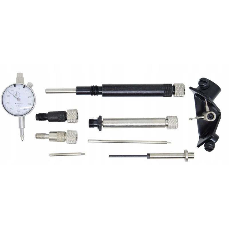 Zestaw do ustawiania pomp wtryskowych obejmuje wszystkie niezbędne akcesoria, które pozwalają na przeprowadzenie precyzyjnych pomiarów. W skład zestawu wchodzą:
