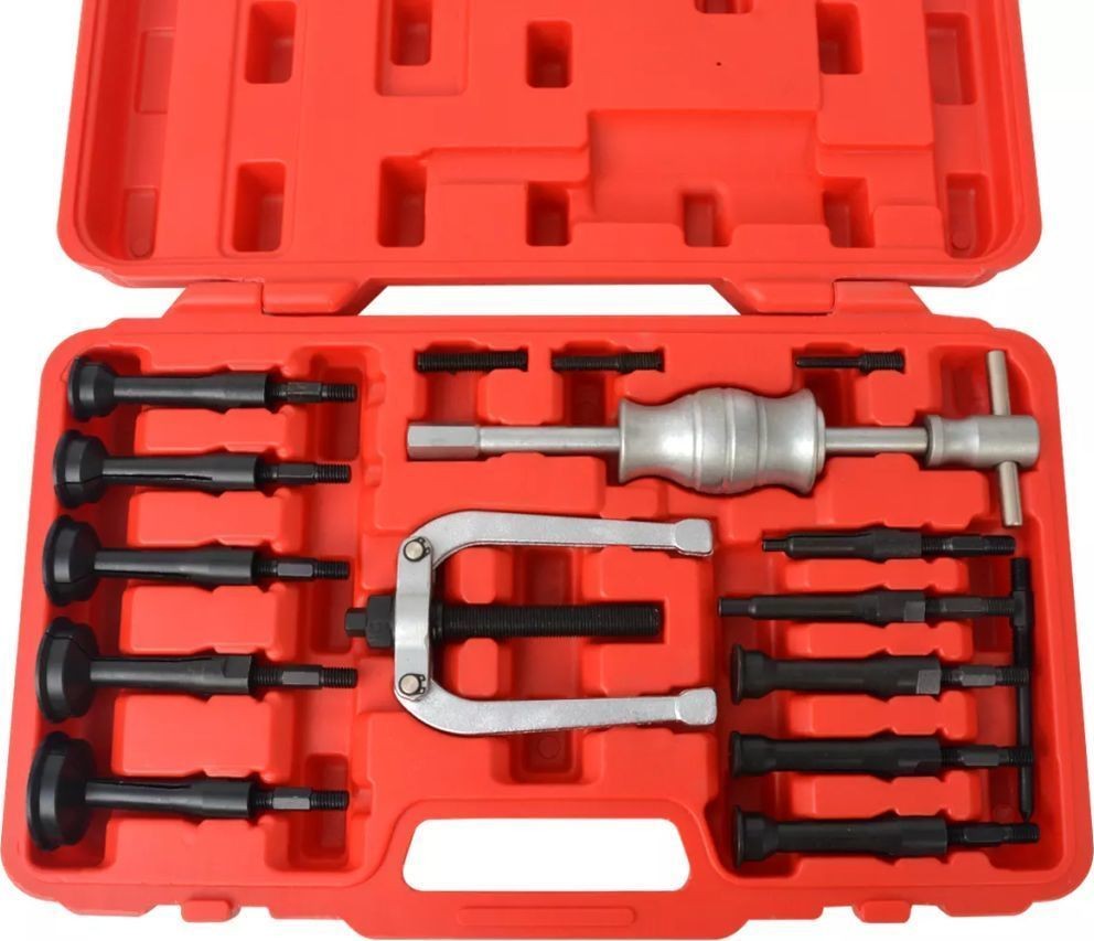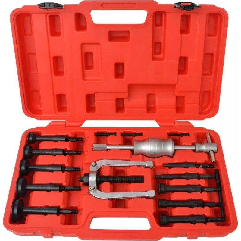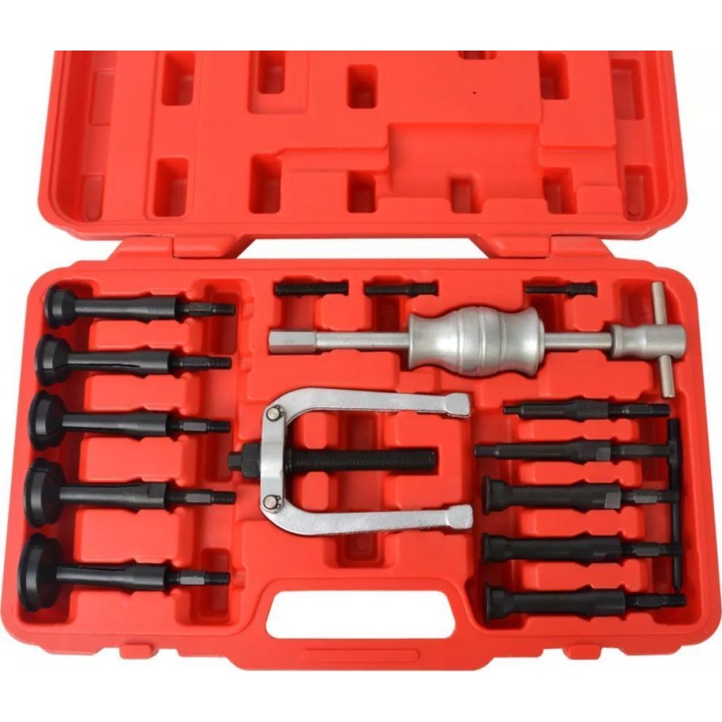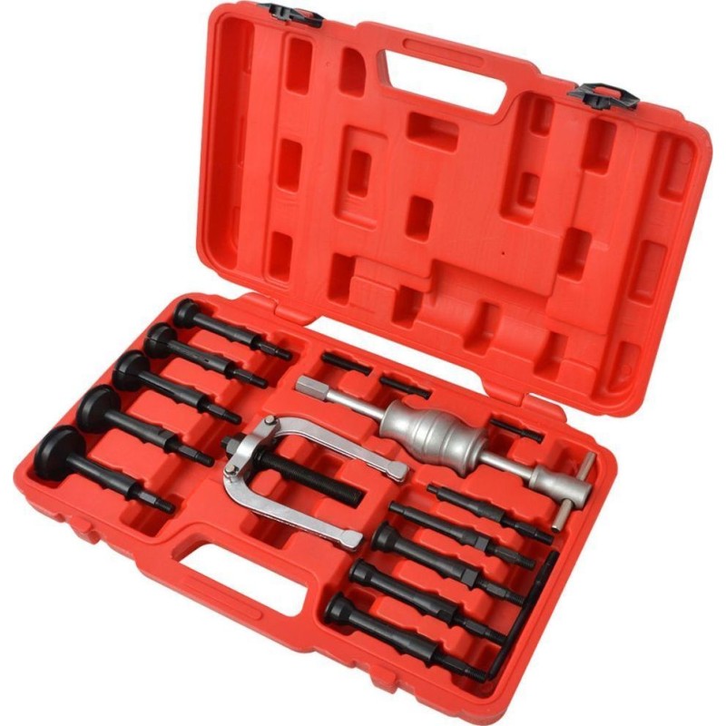 Ten 16-częściowy ściągacz bezwładnościowy wewnętrzny może być używany do usuwania tulei pilotujących, łożysk itp. z obudów ślepych. Jest szczególnie przydatny do stosowania podczas naprawy samochodów, pojazdów użytkowych, maszyn rolniczych oraz w dziedzinie inżynierii mechanicznej.