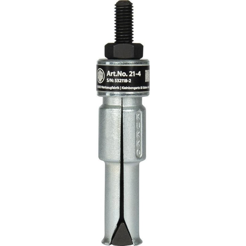 Zastosowanie: do wyciągania łożysk kulkowych, pierścieni zewnętrznych łożysk i panewek. Także do łożysk umieszczonych bardzo blisko tylnej ścianki, które można łatwo uchwycić i wyciągnąć. Do stosowania z podpornicą ściągacza wewnętrznego model 21.