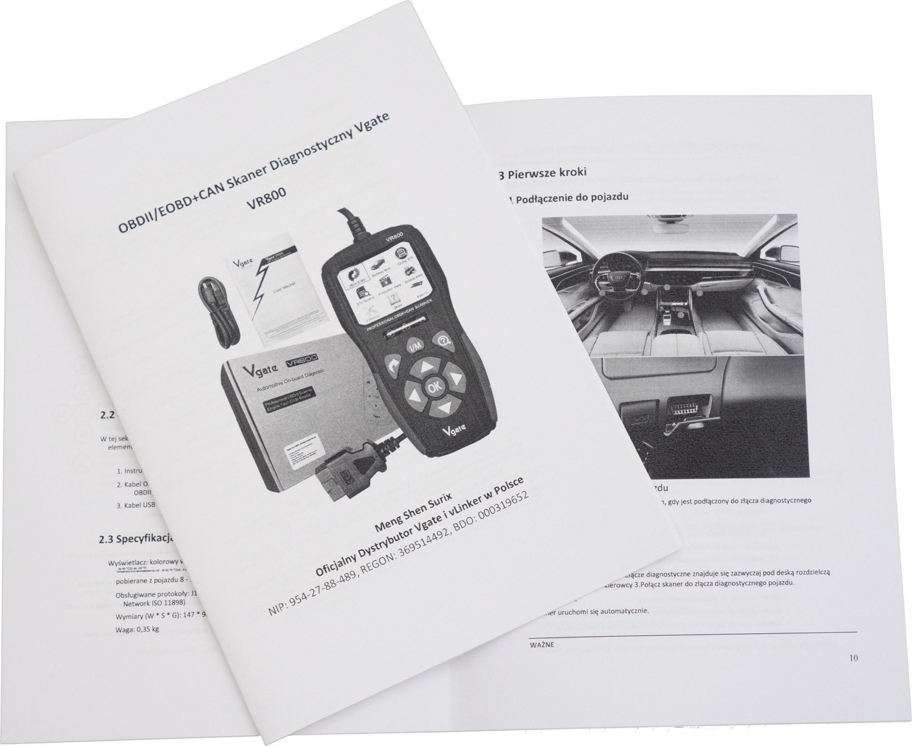 Triton Vgate VR800 Interfejs diagnostyczny Tester OBD2 PL