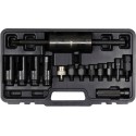 W skład zestawu wchodzą niezbędne klucze oraz adaptery, co zwiększa funkcjonalność narzędzia i pozwala na jego wszechstronne zastosowanie. Dzięki temu, użytkownik ma wszystko, co potrzebne do skutecznego demontażu wtryskiwaczy w jednym komplecie.