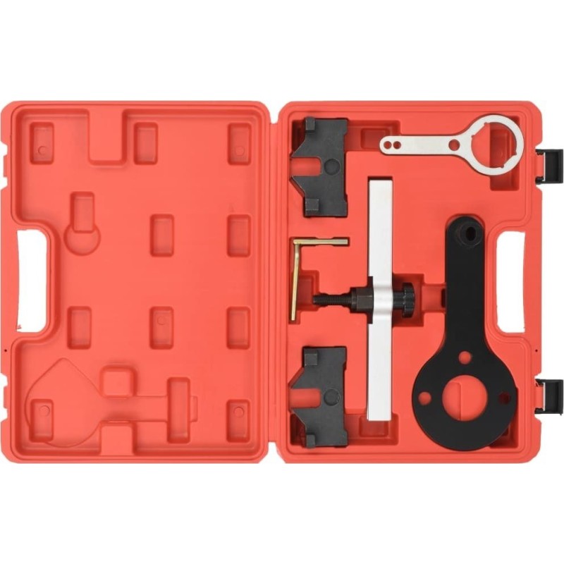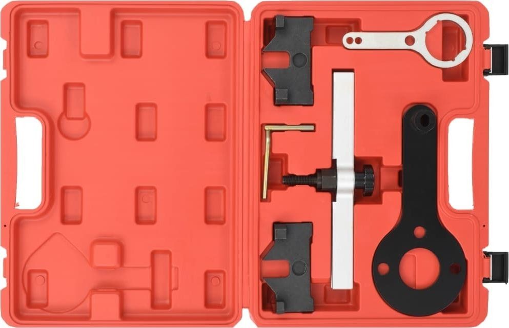 Zestaw narzędzi do blokowania rozrządu wykonany jest ze stali wysokiej jakości, zapewniającej wytrzymałość i trwałość. Wszystkie elementy umieszczono w profilowanej walizce, co ułatwia ich przechowywanie i transport.