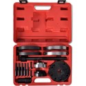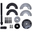 Zestaw sprawdzi się przy instalacji i demontażu łożysk drugiej generacji w samochodach popularnych marek takich jak VW, Audi, Skoda czy Seat. Pozwoli zaoszczędzić sporo czasu i energii podczas napraw reparacyjnych. W skład zestawu wchodzą także kołnierze montażowe. Pierścień ustalający zabezpiecza łożysko w obudowie. Cały zestaw umieszczono w wygodnej i trwałej walizce.