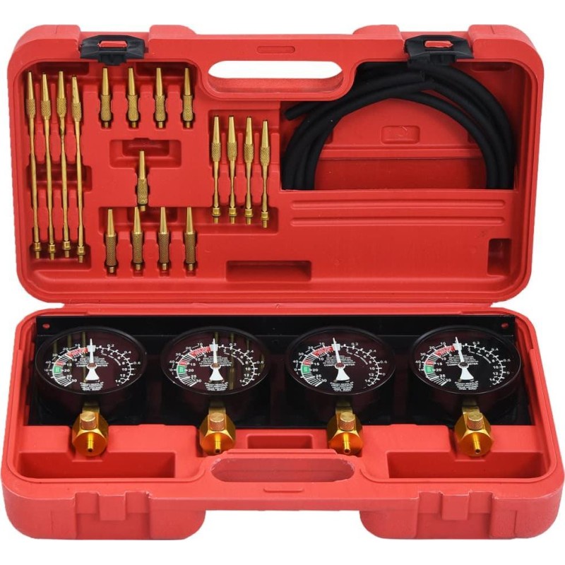 Zestaw ten pozwala na zsynchronizowanie wartości 4 gaźników oraz ich wyregulowanie. Każdy miernik ma własny zawór dławiący i kalibrację.