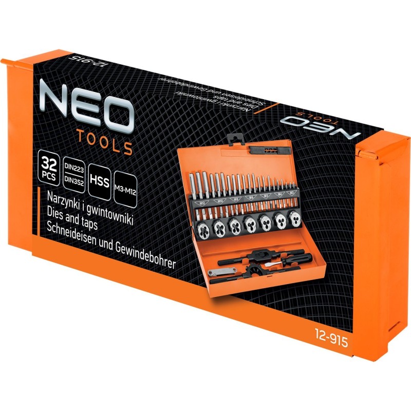 12-915 NARZYNKI I GWINTOWNIKI M3-M12, ZESTAW 32 SZT. HSS W WALIZCE NEO TOOLS