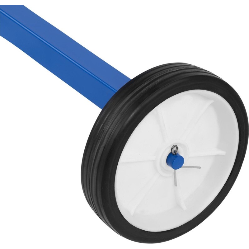 Stojak na papier lakierniczy marki MSW idealnie sprawdzi się w warsztatach lakierniczych i samochodowych. Duża pojemność sprawia, że stojak pomieści kilka rolek papieru lakierniczego o wielkości 30, 45, 60 i 100 cm. Ich montaż jest bardzo łatwy. Z kolei wbudowane ostrza umożliwiają wygodne odcinanie pożądanej długości. Konstrukcja została wykonana ze stali, która charakteryzuje się dużą odpornością na zużycie i warunki panujące w lakierniach. Stojak na papier wyposażono w dwa plastikowe kółka (6), które umożliwiają przetransportowanie całości w dowolne miejsce.
