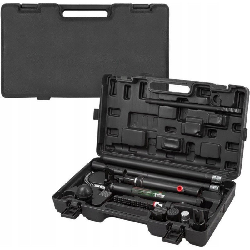 Zestaw zawiera pompę hydrauliczną, cylindry, przedłużacze i zakrzywione nasadki. Można go również uzupełnić o cylinder hydrauliczny o odwróconym działaniu oraz nasadkami mocującymi.