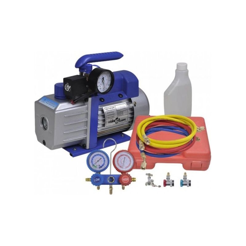 vidaXL Jednostopniowa pompa próżniowa z rozdzielaczem na 2 mierniki