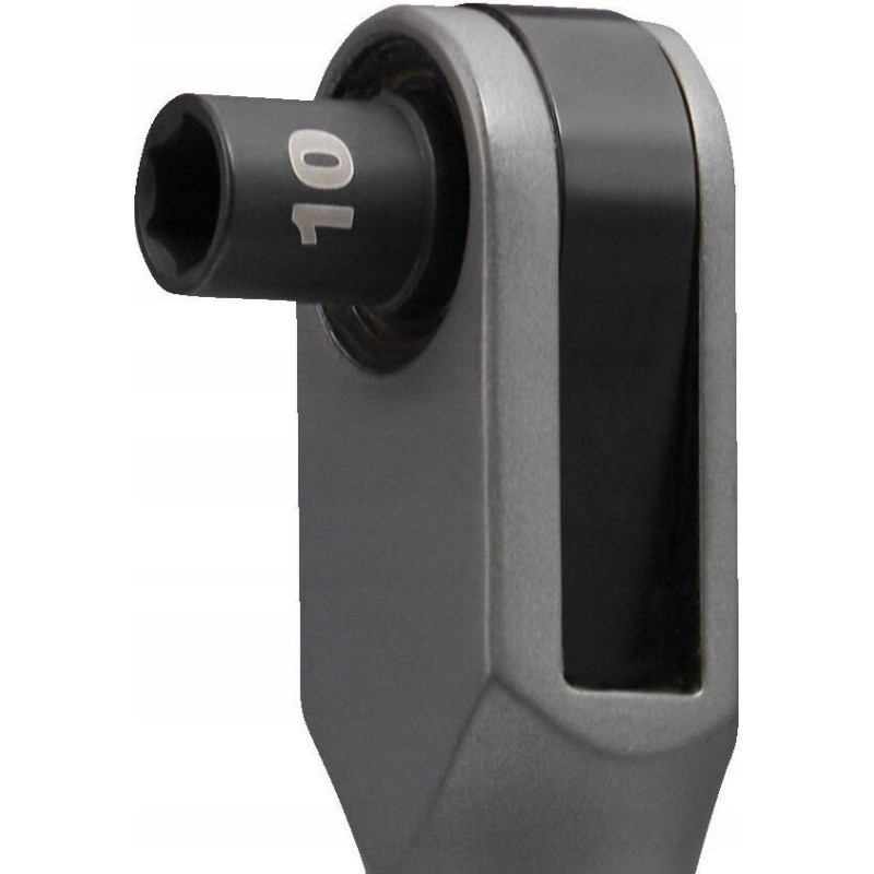 - Dołączony sześciokątny uchwyt na bity 1/4˝, 3/8˝ i 1/4˝ sprawia, że jest to najbardziej wszechstronne rozwiązanie grzechotkowe