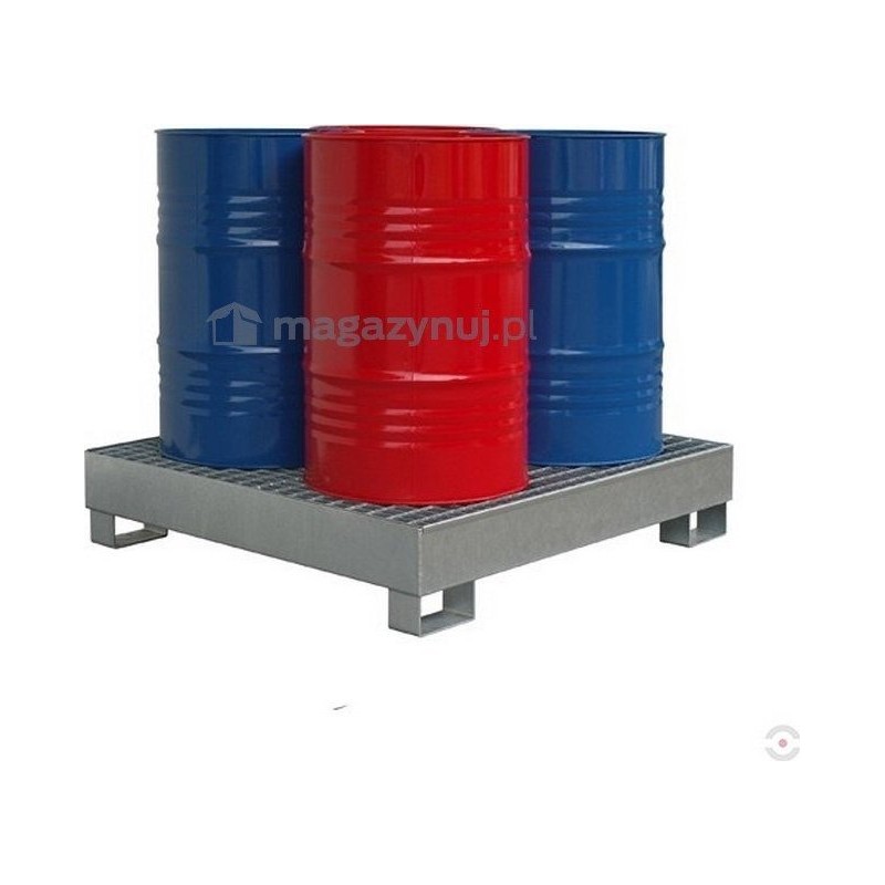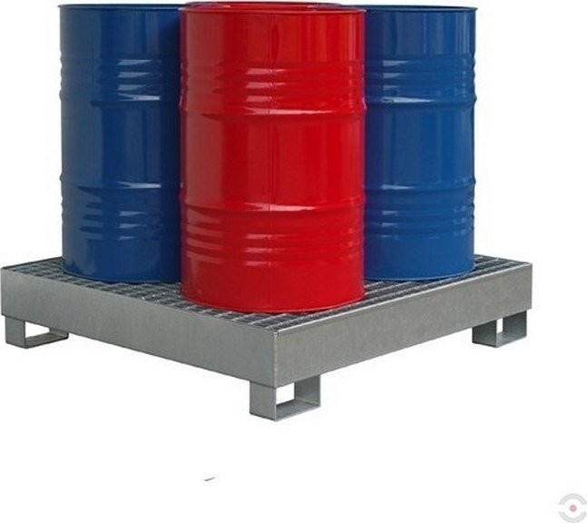 Wanna wychwytowa Topserw, stalowa, ocynkowana do przechowywania 4 beczek pojemności 200 l każda oraz pojemników zawierających palne płyny (benzyny, rozpuszczalniki itp.). Wykorzystywana do stałego zatrzymywania wycieków z przechowywanych wewnątrz budynków pojemników i beczek.