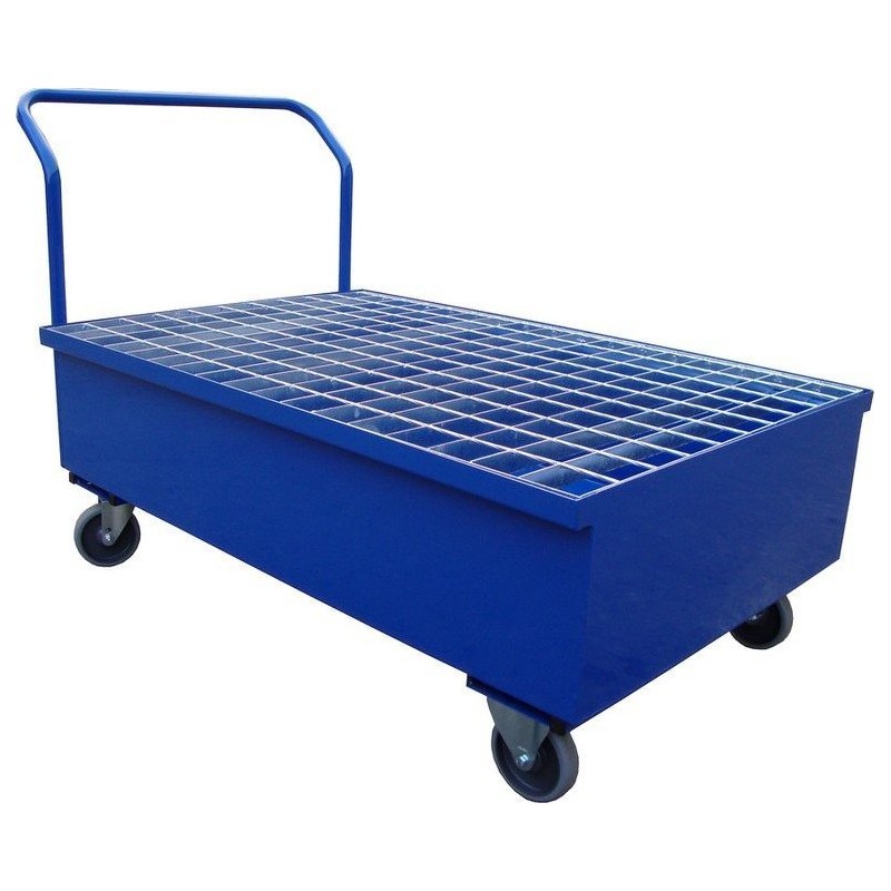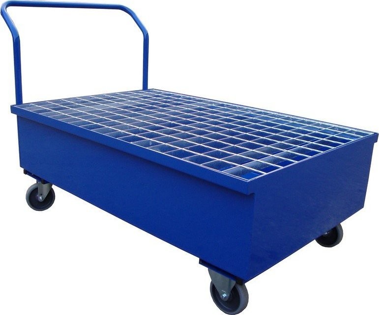 Stalowa, mobilna wanna ociekowa z kratownicą o pojemności 200 l na 2 beczki wym. 1200 x 800 x 230