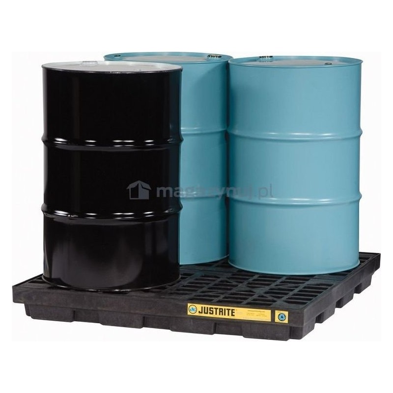 Paleta doskonale nadaje się do składowania akumulatorów oraz beczek i pojemników z olejami, czy chemikaliami nawet tymi najbardziej agresywnymi. Jest stosowana do stałego wychwytywania wycieków lub jako miejsce dozowania płynów z pojemników i beczek. Opcjonalne zaciski łączące pewnie łączą moduły palet (wanien) ze sobą dla stworzenia wspólnej platformy roboczej. W przypadku konieczności utworzenia wzajemnego połączenia między modułami, oferowany jest zestaw przelewowy, który pozwala na połączenie modułów dla zwiększenia całkowitej pojemności wychwytowej zespołu.